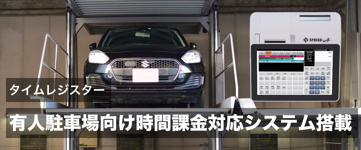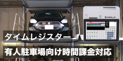 ビルの駐車施設を利用した有人駐車場では車の誘導や立体駐車の操作など作業が多いため、簡易操作な時間課金対応のレジスターが最適です。→ 有人駐車場向けレジ