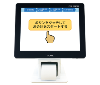 スタッフ側のPOSレジとお客様側の対面ディスプレイが連動しているので、POSレジ1台で対面型のセルフレジを構築できます。